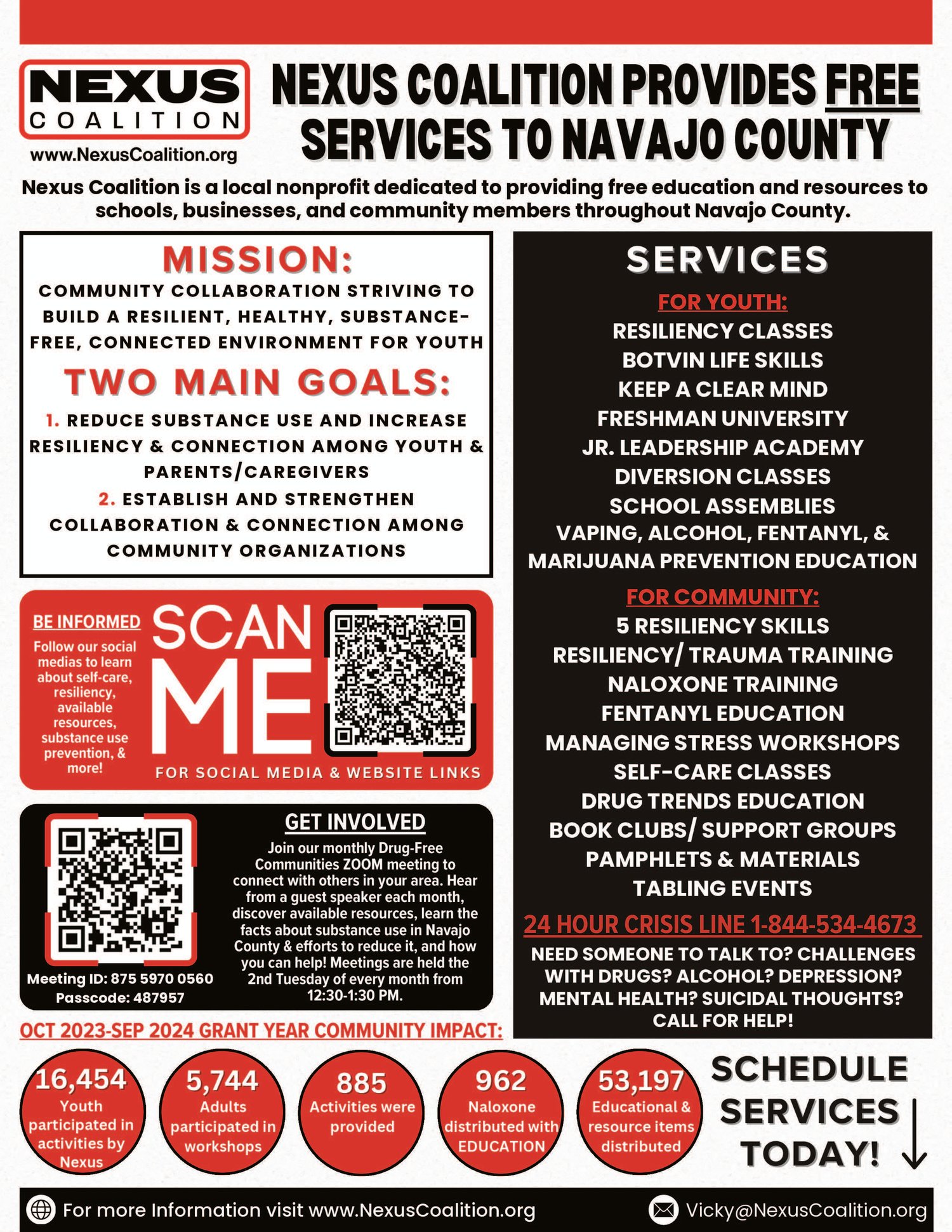 24 Hour Crisis Line - 844-534-4673 (HOPE)