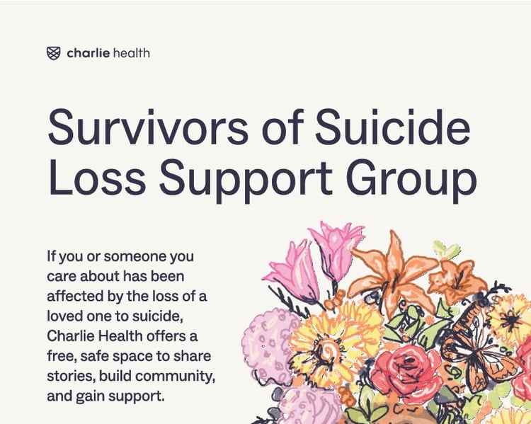 If you or someone you care about has been affected by the loss of a loved one to suicide, Charlie Health offers a free, safe space to share stories, build community, and gain support.