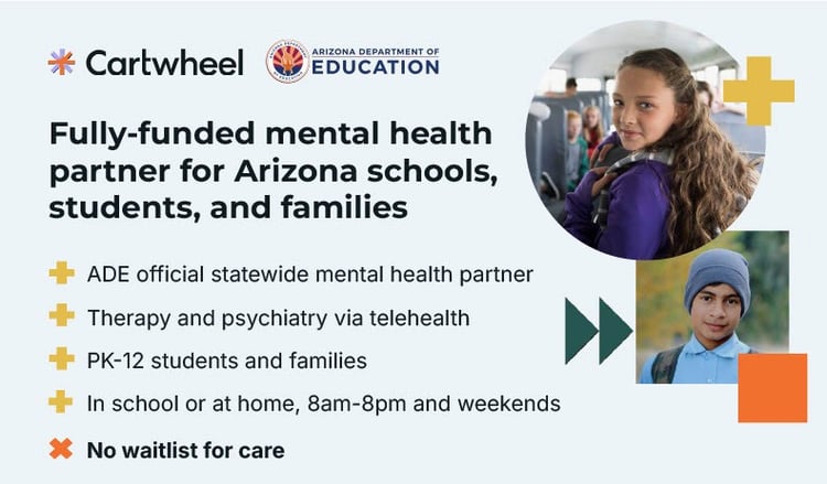 Thanks to funding from the Arizona Department of Education (ADE), all schools in rural counties – outside of Pima and Maricopa – can now sign up for mental health support and start referring students as soon as March 1, 2025. Services are offered at no cost to schools and are covered by insurance.